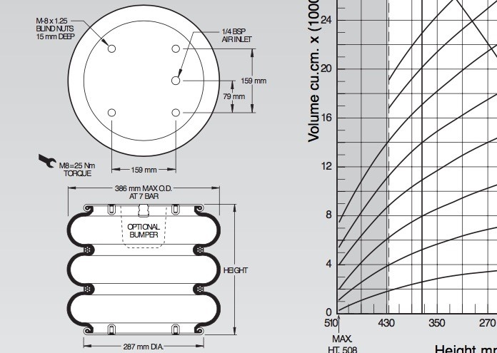 Λαστιχένια ΑΝΩΤΑΤΗ διάμετρος φυσητήρων: 383 χιλ.